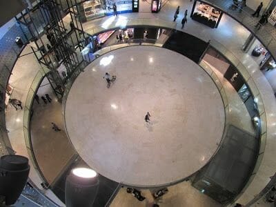 Pues tampoco voy a venir a hablaros en un blog de viajes de un centro comercial a no ser que destaque o sea curioso por alguna característica. pues sí, el centro comercial de Las Arenas lo es, y no sólo por su mirador. Fue construido sobre una antigua plaza de toros, la mítica plaza de Toros de Las Arenas. Seas o no antitaurino me tendrás que reconocer que muchas de las plazas de toros tienen una arquitectura que mola, y las Arenas es una de ellas. Pues me parece genial que la hayan transformado de esta manera y darle un uso cívico. El centro comercial, como todos, tiene varias plantas llenas de tiendas y restaurantes y no faltan salas de cine.