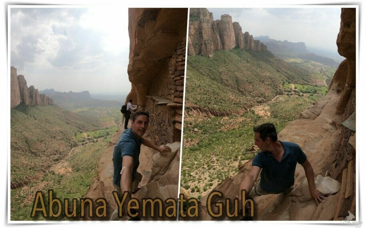 El remate final es andar sobre un saliente de 50 cm de ancho frente a un acantilado de 300 metros que acaba en la entrada de la iglesia excavada en la roca.